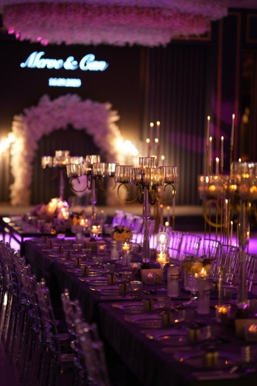 Konuklarımızı ilk görüşte etkileyen salonumuz lüks ve nezih ambiyansıyla fark yaratıyor. Fuaye alanından başlayan sıra dışı tasarım detaylarımız, mermer zeminler, modern aydınlatmalar, bitki duvarlarımız hayallerinizin ötesine geçiyor. Salonumuz lake, mermer, kumaş , ayna materyallerinin eşsiz mimari birleşimiyle göz dolduruyor. 5 kollu lüks şamdan ve altın incili cam suplalarımız yuvarlak masalarımızı süslerken, çevresindeki şeffaf tiffany sandalyelerimizi dilerseniz zevkinize göre giydiriyoruz.