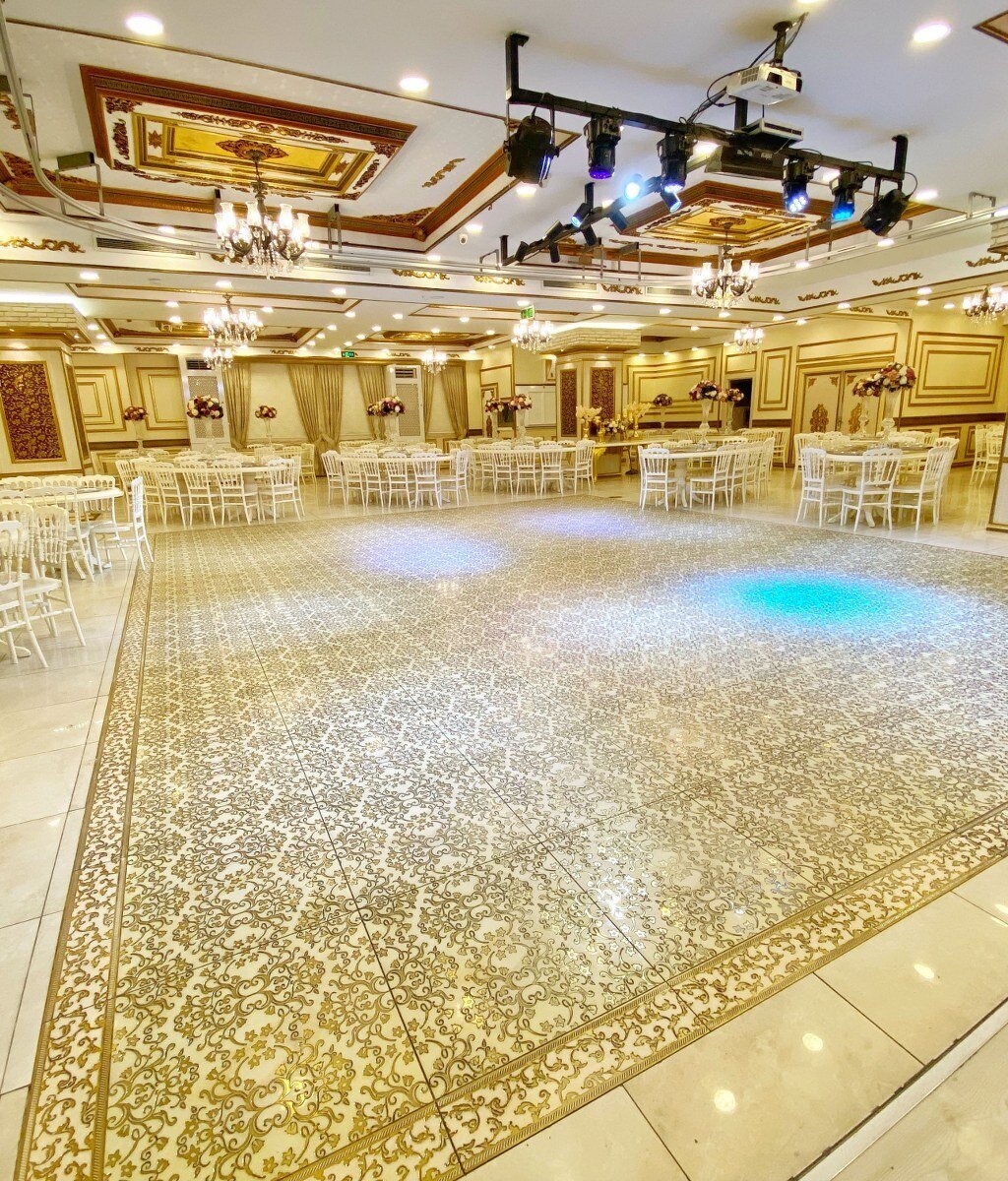 İrem Balo ve Davet Salonu Hacıosman’da bölgenin en şık salonlarından biri niteliğinde. Beyaz masalarımız, gri filmli ayna tablalara sahip. Böylelikle ışıltılı ve göz alıcı bir görünüm elde ediyoruz. Masalarımızı beyaz napolyon sandalyelerle çevreliyoruz. Uzun cam vazolara yerleştirdiğimiz çiçek buketleriyle ve kenarı altın yaldızlı cam suplalarla masaları dekore ediyoruz. Altın varaklı tavanlarımızdan sarkan kristal avizelerle ihtişamlı bir görünüme kavuşuyoruz.