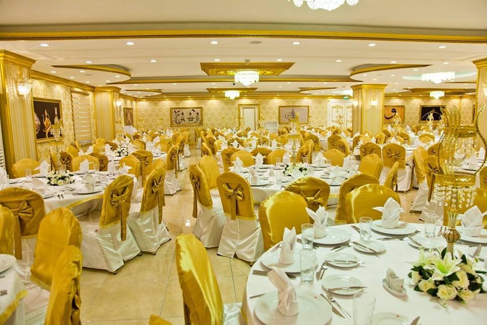 Davet alanlarımızı Osmanlı saray konseptiyle dekor ettik ve hem zarif, hem de şık bir görünüm yakaladık. Konsept dahilinde altın sarısına ağırlık veriyor ve altın varak işlemeleriyle gösterişli bir atmosfer elde ediyoruz. Salonlarımızda kullandığımız kristal süslemeli avizeler de mekanımızın Osmanlı sarayı temasıyla uyum sağlıyor ve davet alanlarımıza zengin bir hava katıyor.